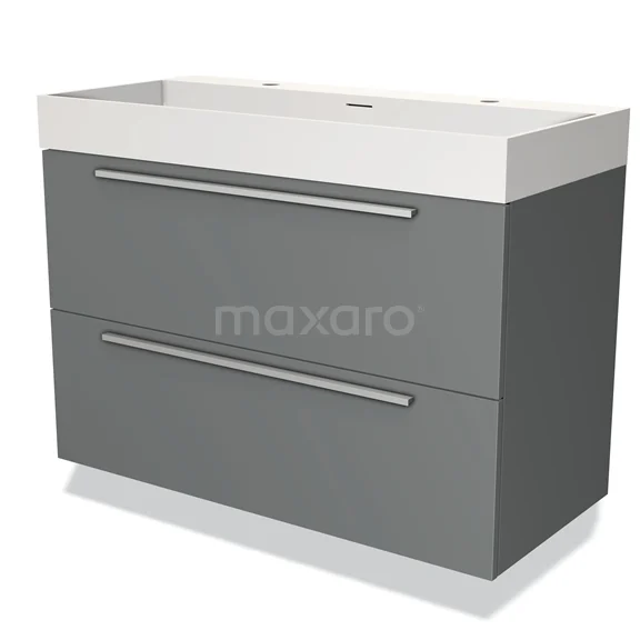 Modulo Waschtische | 120 cm Mittelgrau Flach front Solid Surface 2 übereinanderliegende Schubladen