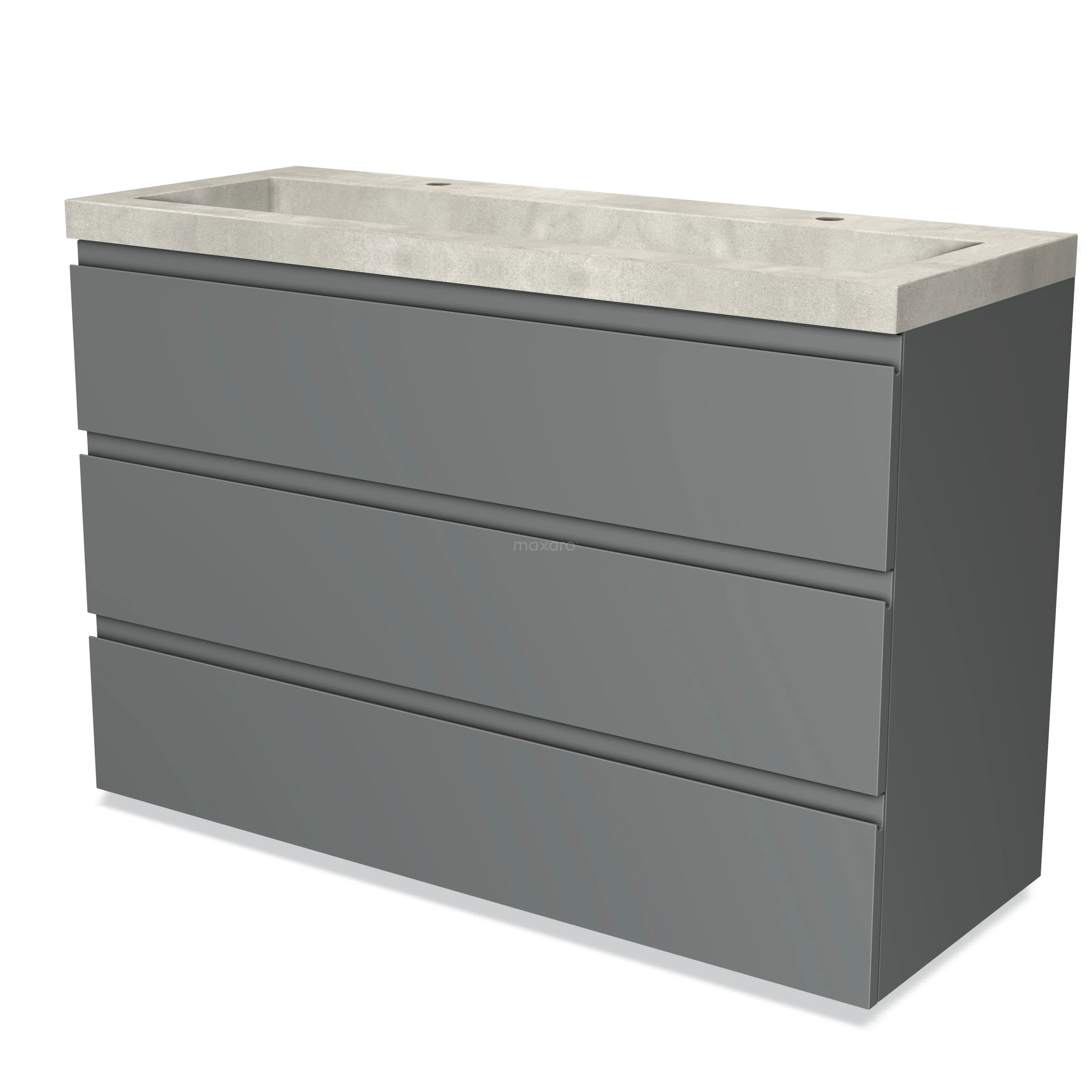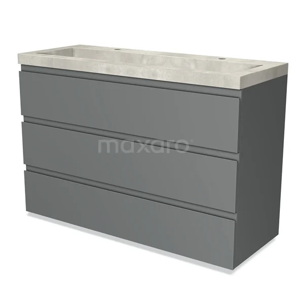 Modulo Waschtische | 120 cm Mittelgrau Grifflos front Beton 3 Schubladen
