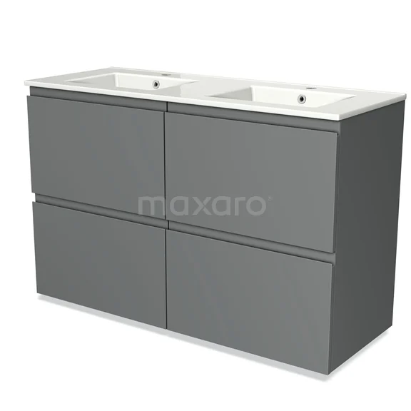 Modulo Waschtische | 120 cm Mittelgrau Grifflos front Keramik 4 hohe Schubladen