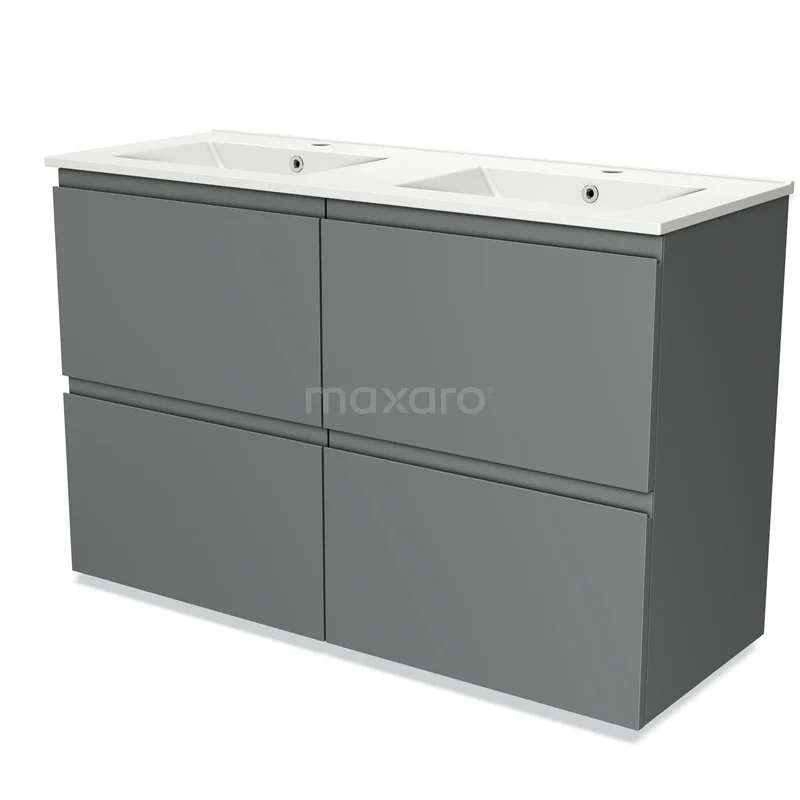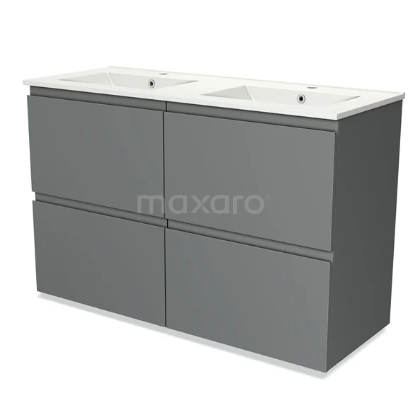 Modulo Waschtische | 120 cm Mittelgrau Grifflos front Keramik 4 hohe Schubladen