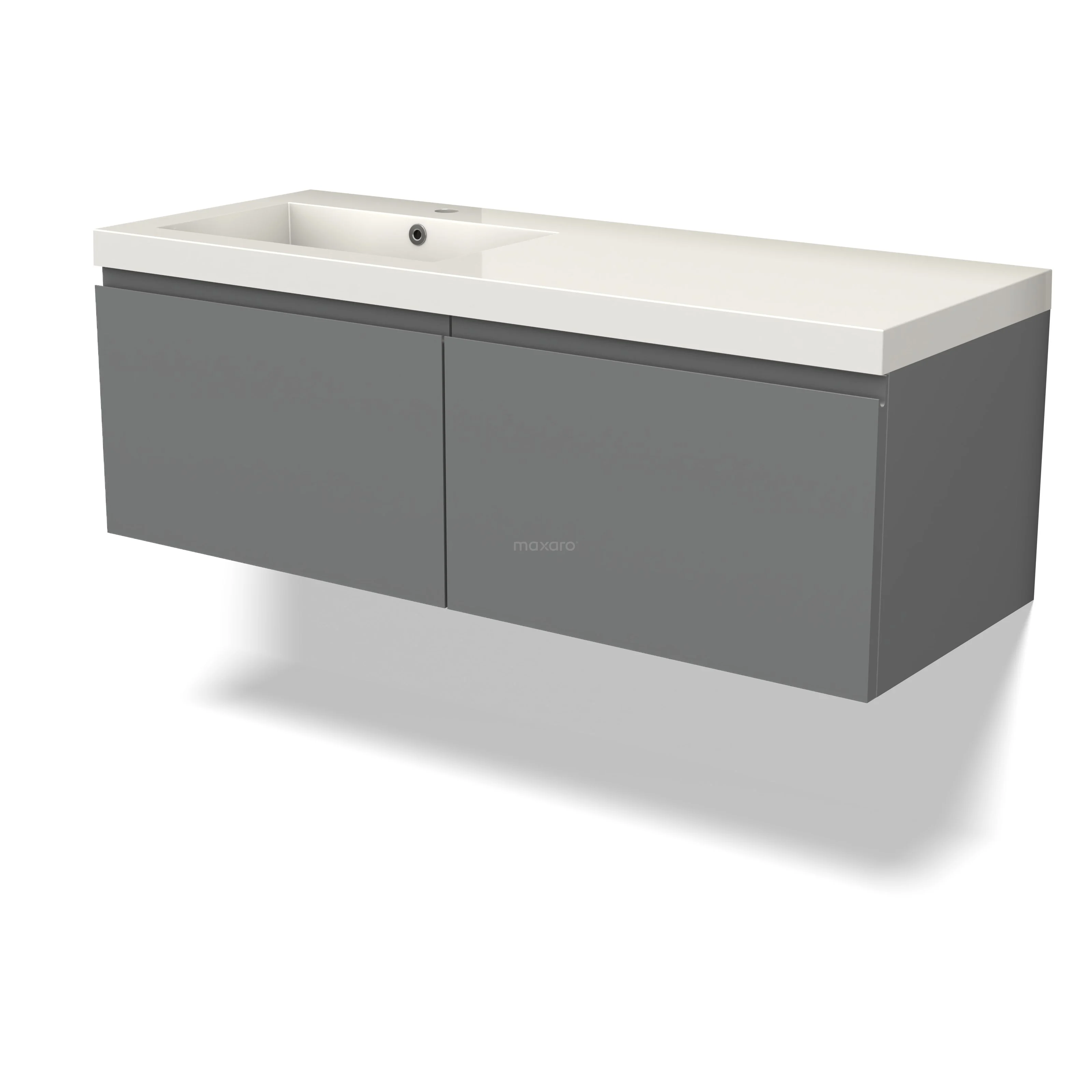 Modulo Waschtische | 120 cm Mittelgrau Grifflos front Mineralguss 2 nebeneinanderliegende Schubladen