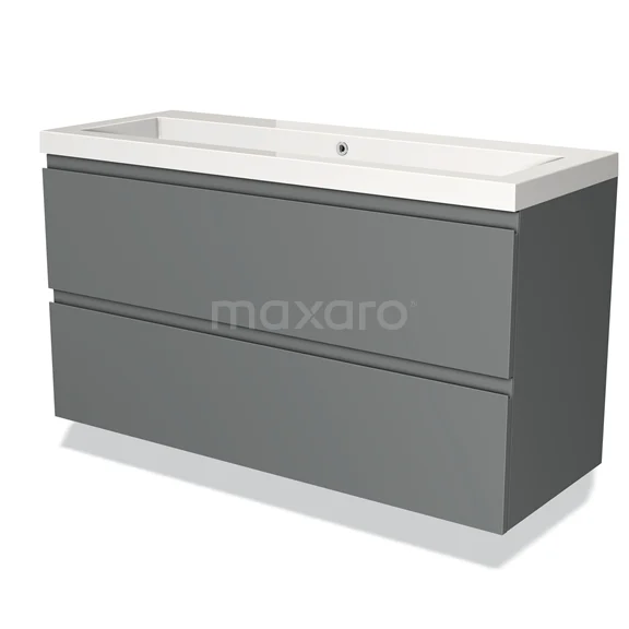 Modulo Waschtische | 120 cm Mittelgrau Grifflos front Mineralguss 2 übereinanderliegende Schubladen