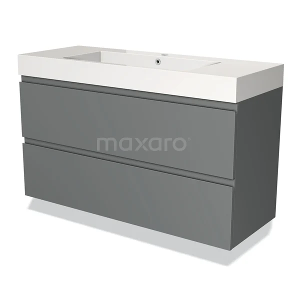 Modulo Waschtische | 120 cm Mittelgrau Grifflos front Mineralguss 2 übereinanderliegende Schubladen