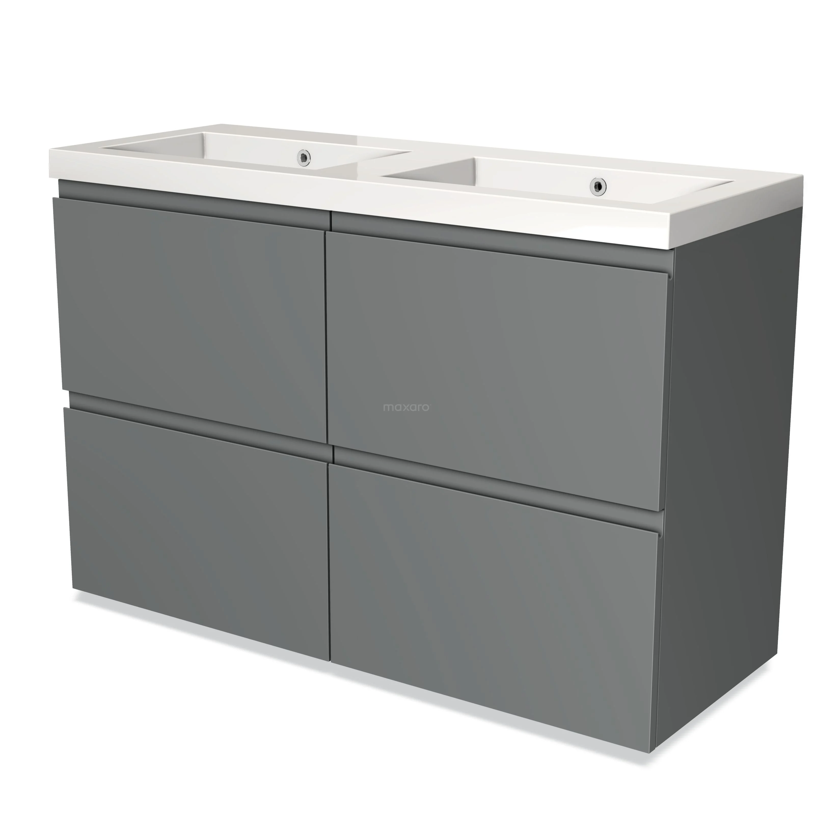 Modulo Waschtische | 120 cm Mittelgrau Grifflos front Mineralguss 4 hohe Schubladen