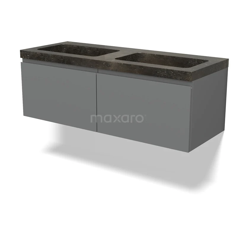 Modulo Waschtische | 120 cm Mittelgrau Grifflos front Naturstein 2 nebeneinanderliegende Schubladen