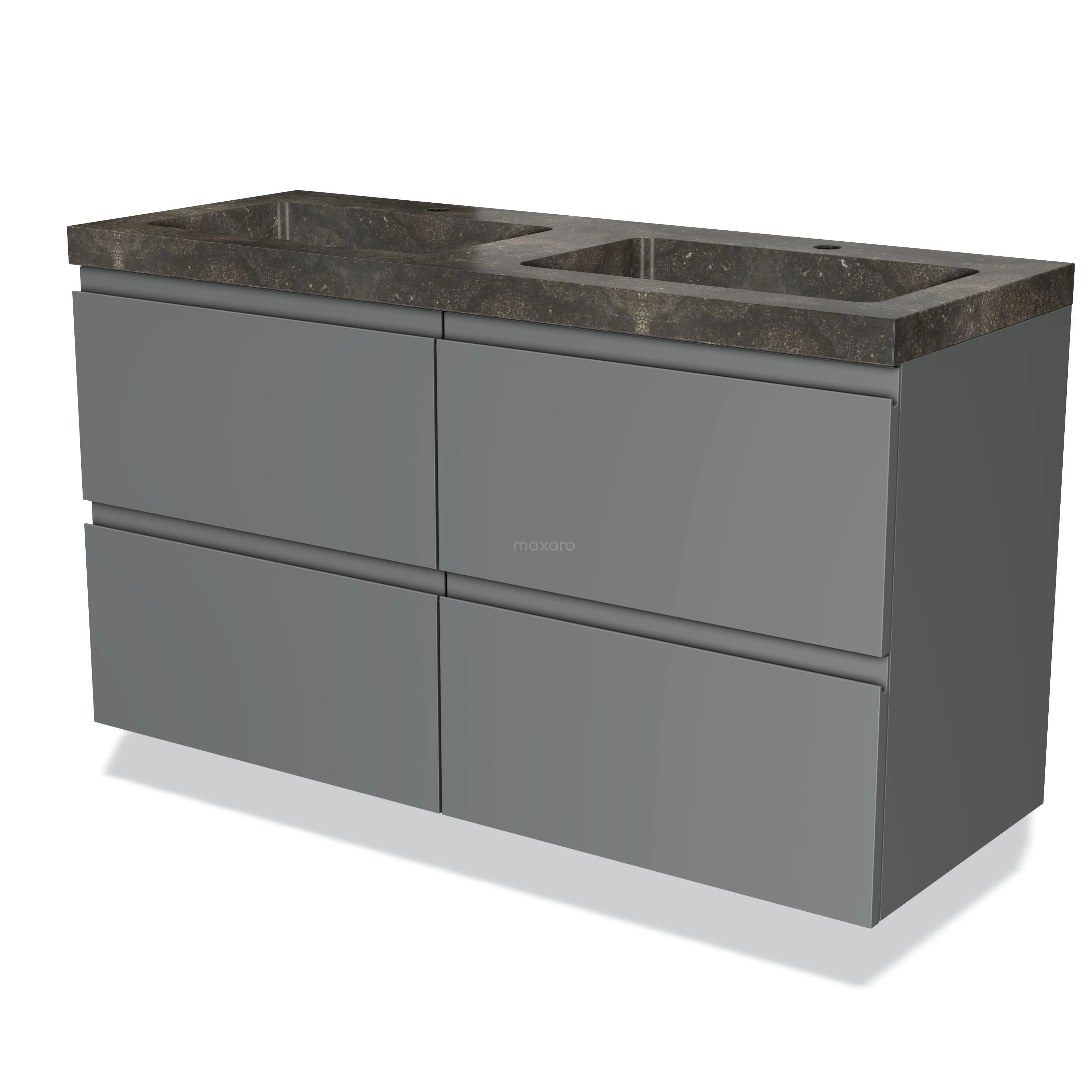 Modulo Waschtische | 120 cm Mittelgrau Grifflos front Naturstein 4 Schubladen