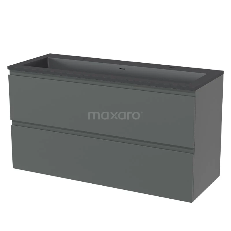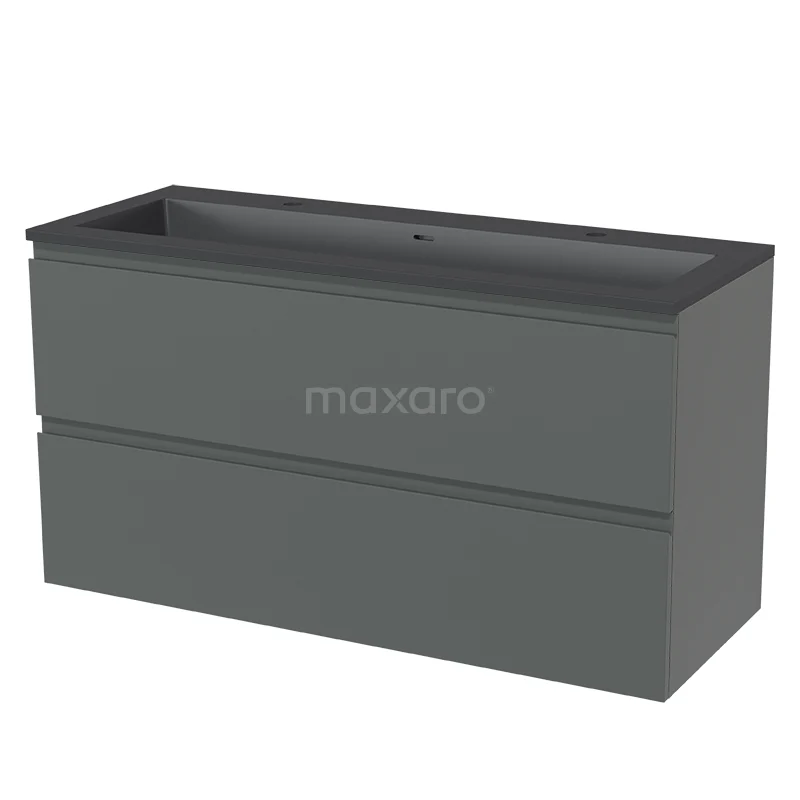 Modulo Waschtische | 120 cm Mittelgrau Grifflos front Quarz 2 übereinanderliegende Schubladen