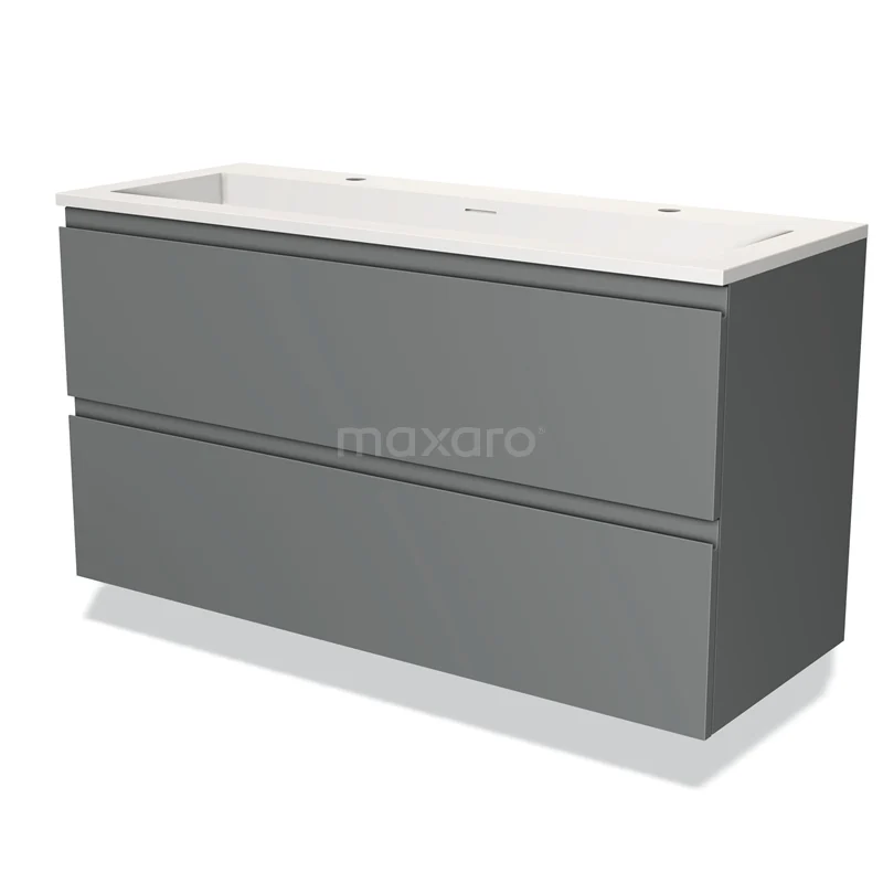 Modulo Waschtische | 120 cm Mittelgrau Grifflos front Solid Surface 2 übereinanderliegende Schubladen