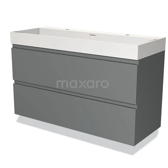 Modulo Waschtische | 120 cm Mittelgrau Grifflos front Solid Surface 2 übereinanderliegende Schubladen