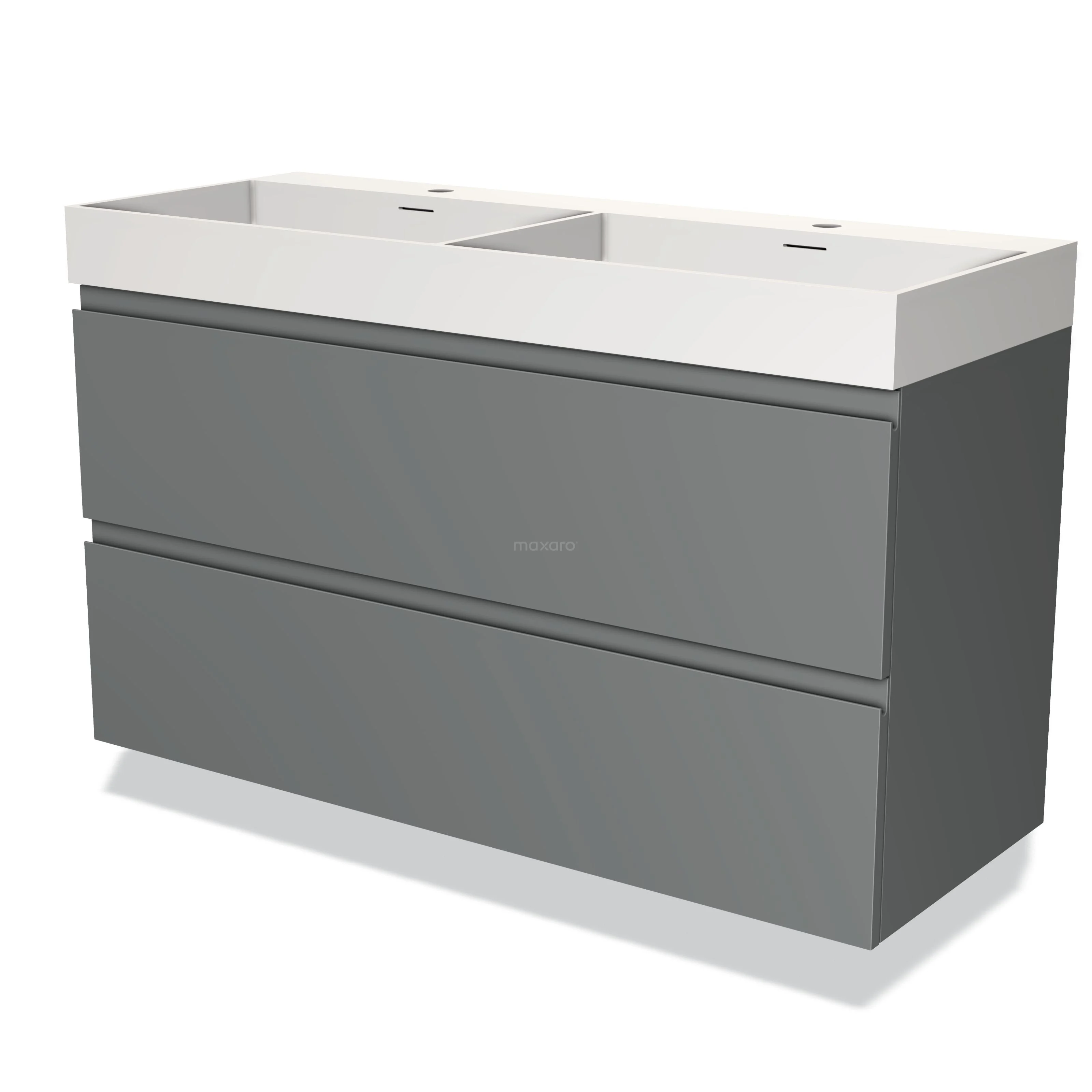 Modulo Waschtische | 120 cm Mittelgrau Grifflos front Solid Surface 2 übereinanderliegende Schubladen