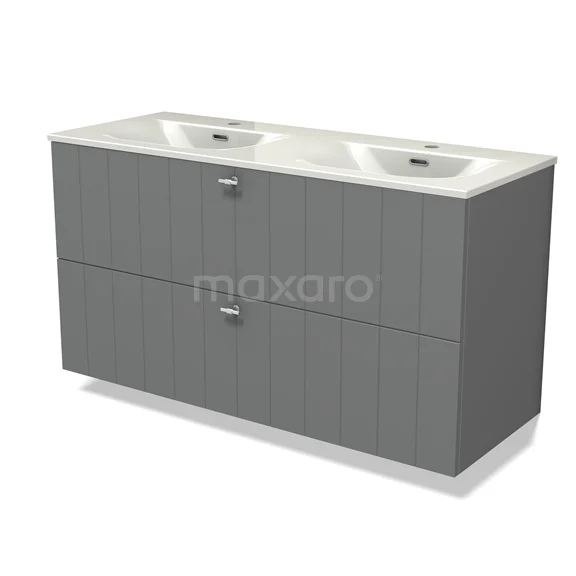 Modulo Waschtische | 120 cm Mittelgrau Lamelle front Keramik 2 übereinanderliegende Schubladen