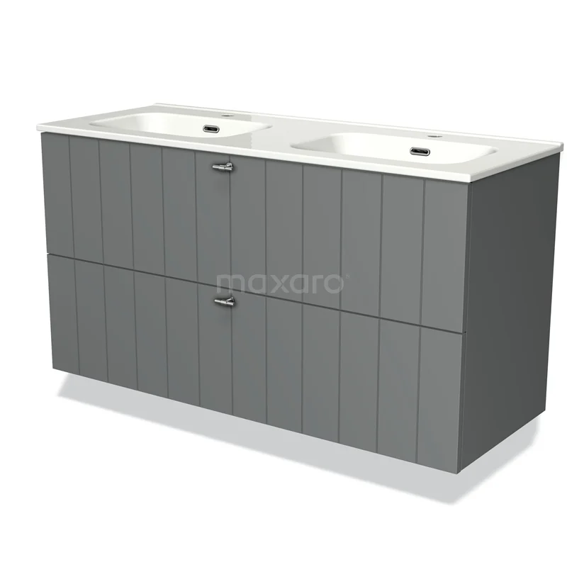 Modulo Waschtische | 120 cm Mittelgrau Lamelle front Keramik 2 übereinanderliegende Schubladen