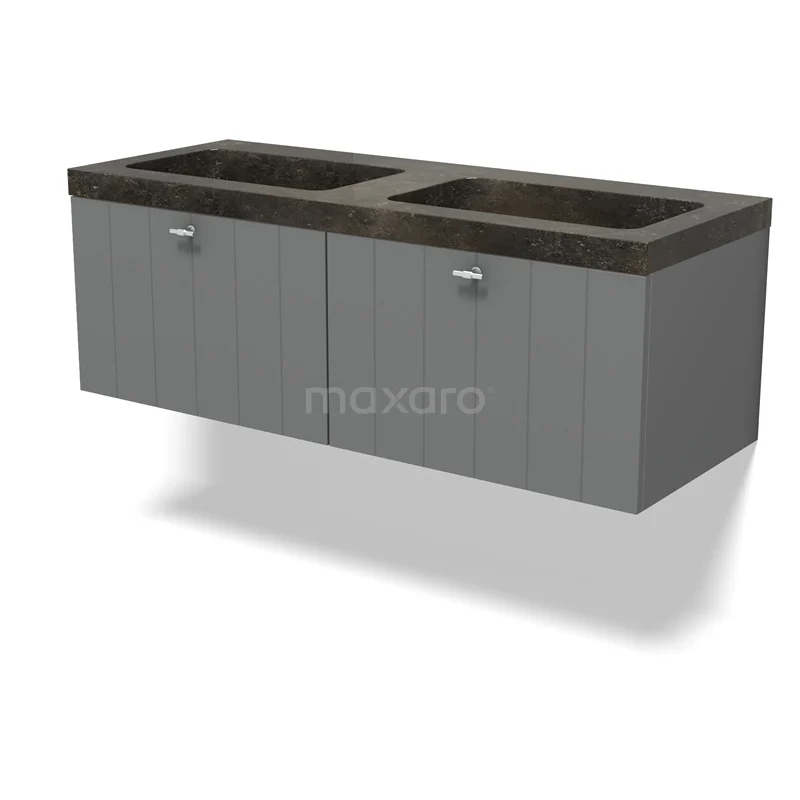 Modulo Waschtische | 120 cm Mittelgrau Lamelle front Naturstein 2 nebeneinanderliegende Schubladen