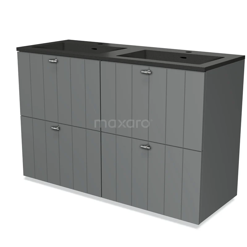 Modulo Waschtische | 120 cm Mittelgrau Lamelle front Quarz 4 hohe Schubladen