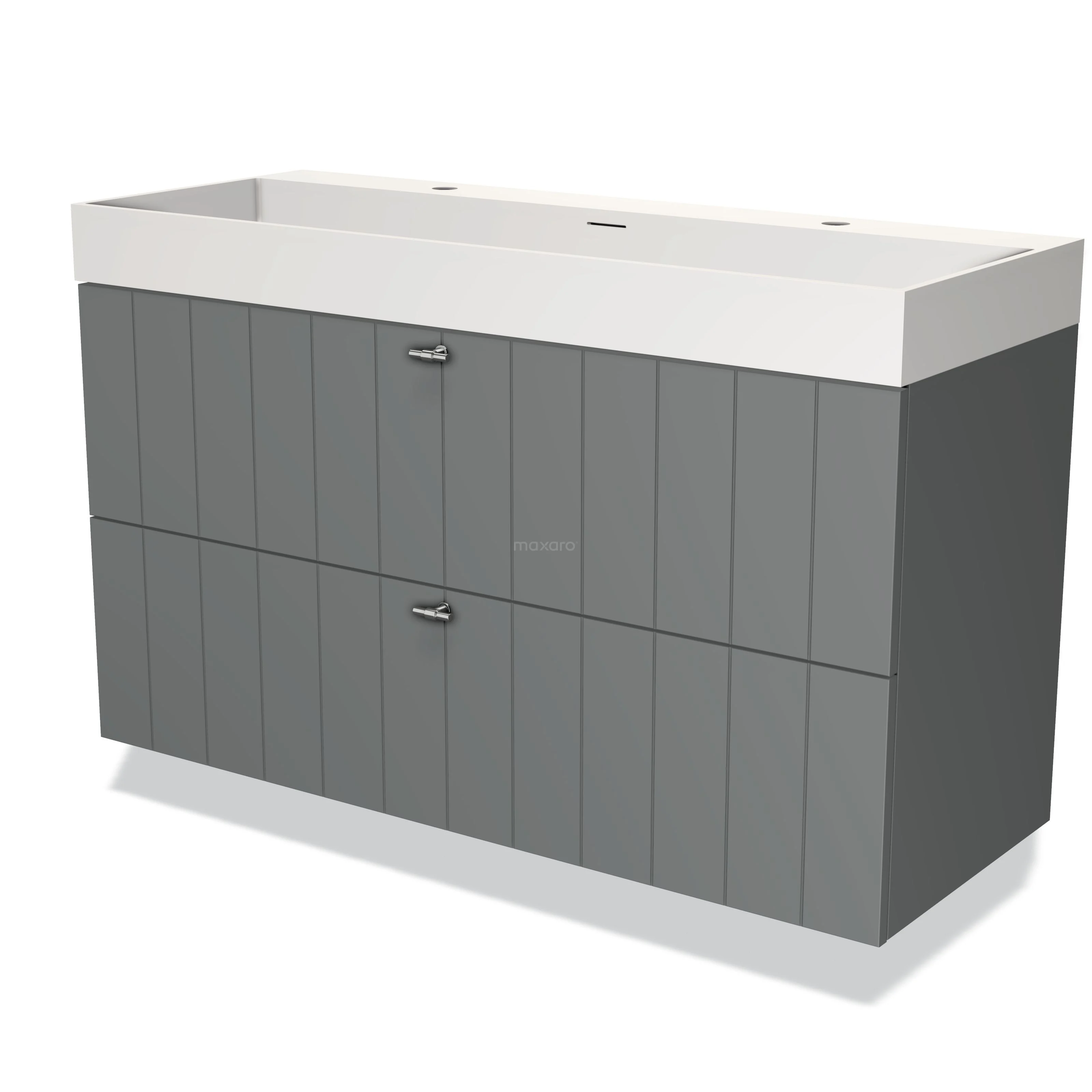 Modulo Waschtische | 120 cm Mittelgrau Lamelle front Solid Surface 2 übereinanderliegende Schubladen