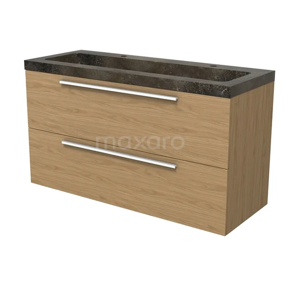 Modulo Waschtische | 120 cm Natürliches Furnier Flach front Naturstein 2 übereinanderliegende Schubladen