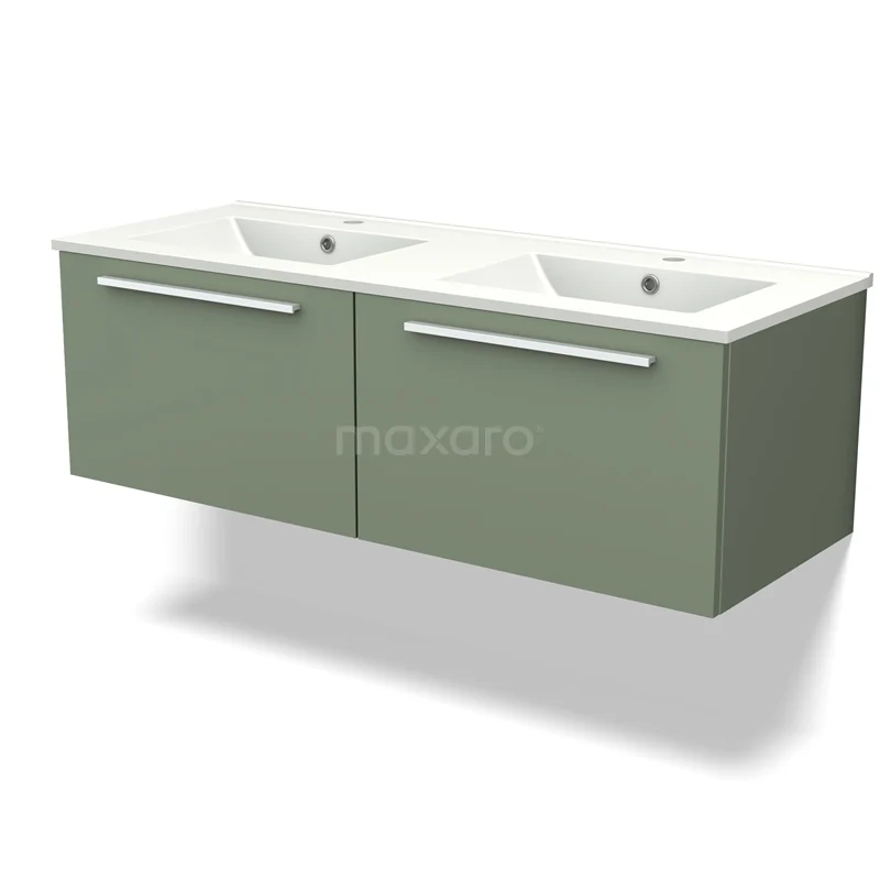 Modulo Waschtische | 120 cm Salbeigrün Flach front Keramik 2 nebeneinanderliegende Schubladen