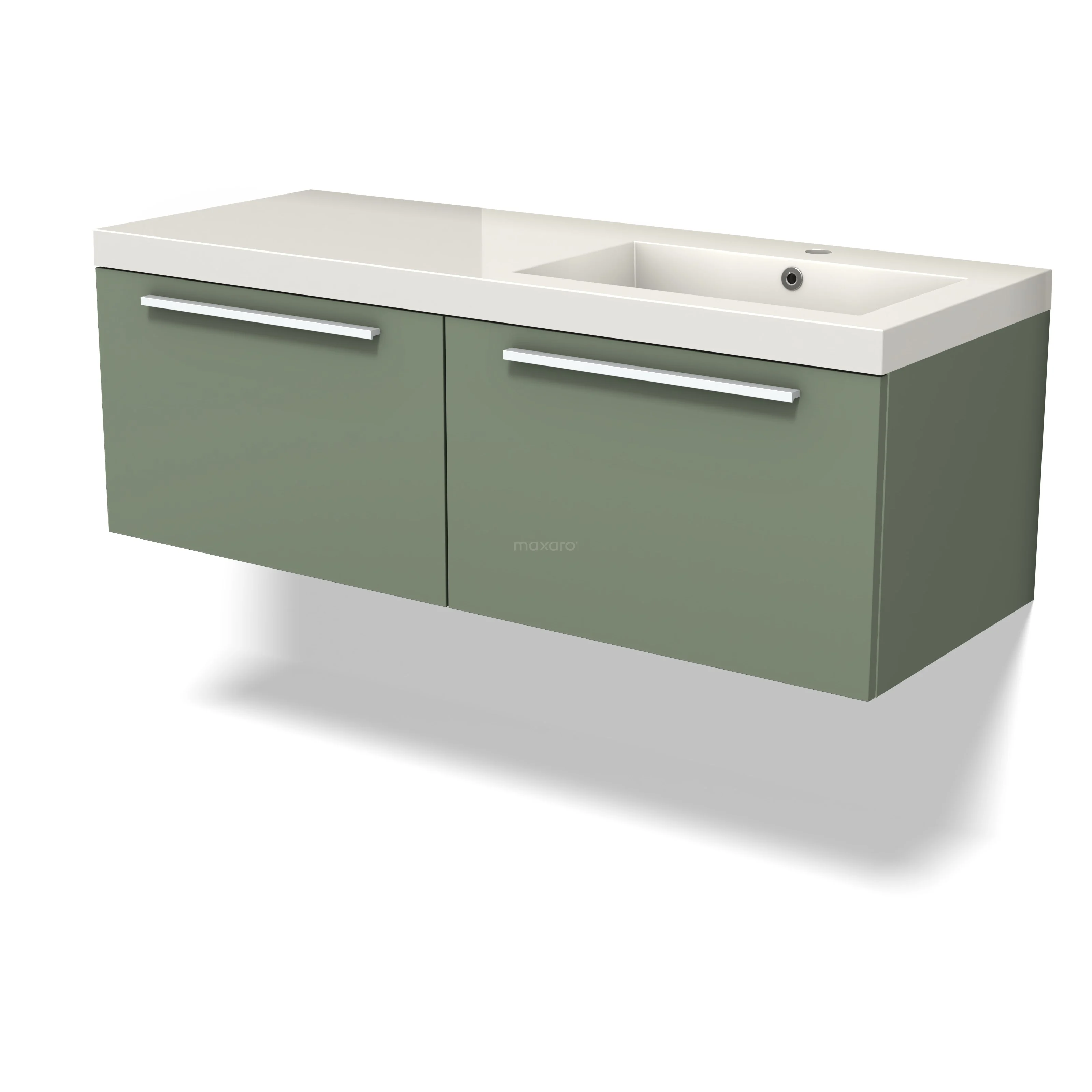 Modulo Waschtische | 120 cm Salbeigrün Flach front Mineralguss 2 nebeneinanderliegende Schubladen