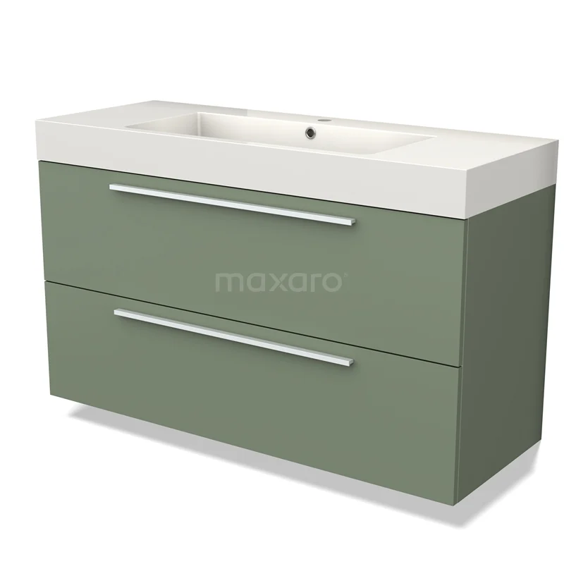 Modulo Waschtische | 120 cm Salbeigrün Flach front Mineralguss 2 übereinanderliegende Schubladen