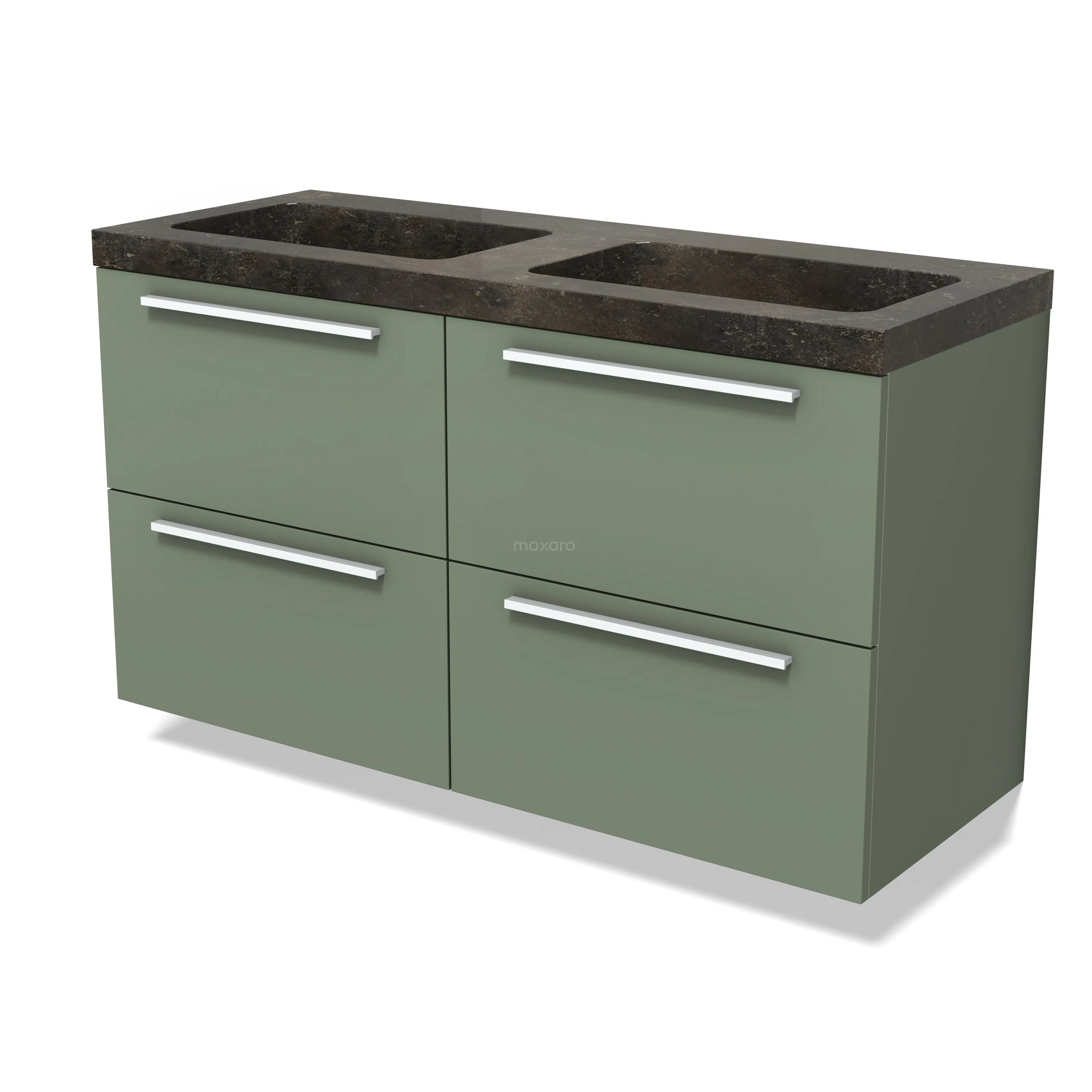 Modulo Waschtische | 120 cm Salbeigrün Flach front Naturstein 4 Schubladen