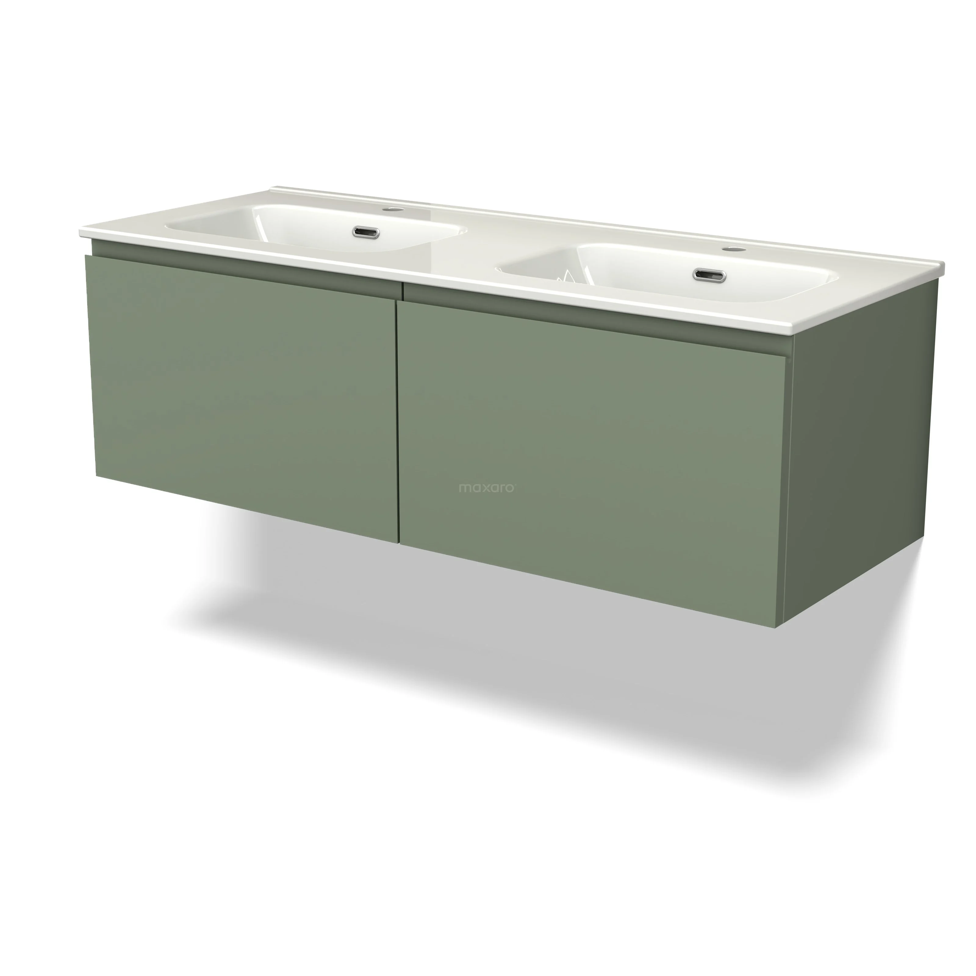 Modulo Waschtische | 120 cm Salbeigrün Grifflos front Keramik 2 nebeneinanderliegende Schubladen