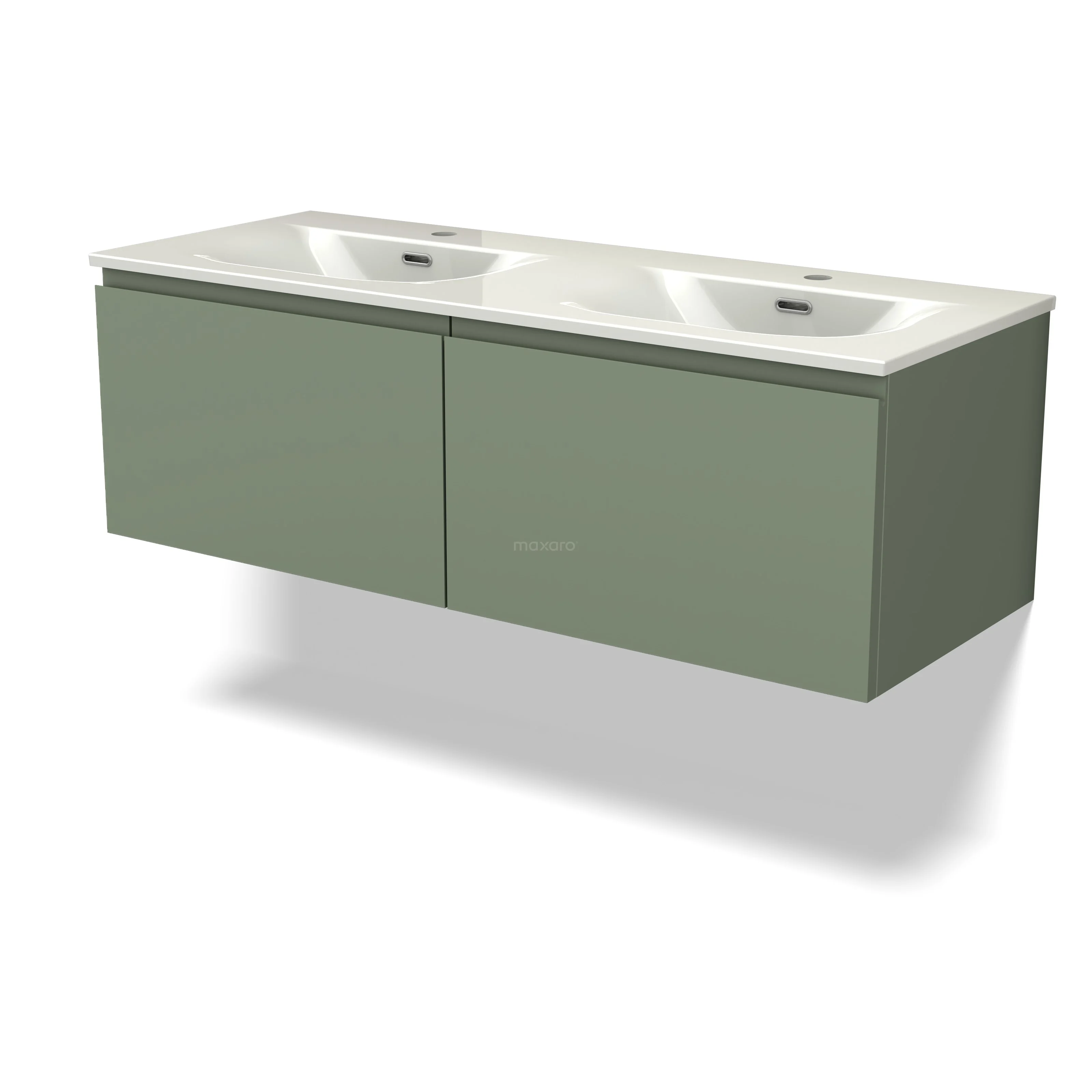 Modulo Waschtische | 120 cm Salbeigrün Grifflos front Keramik 2 nebeneinanderliegende Schubladen