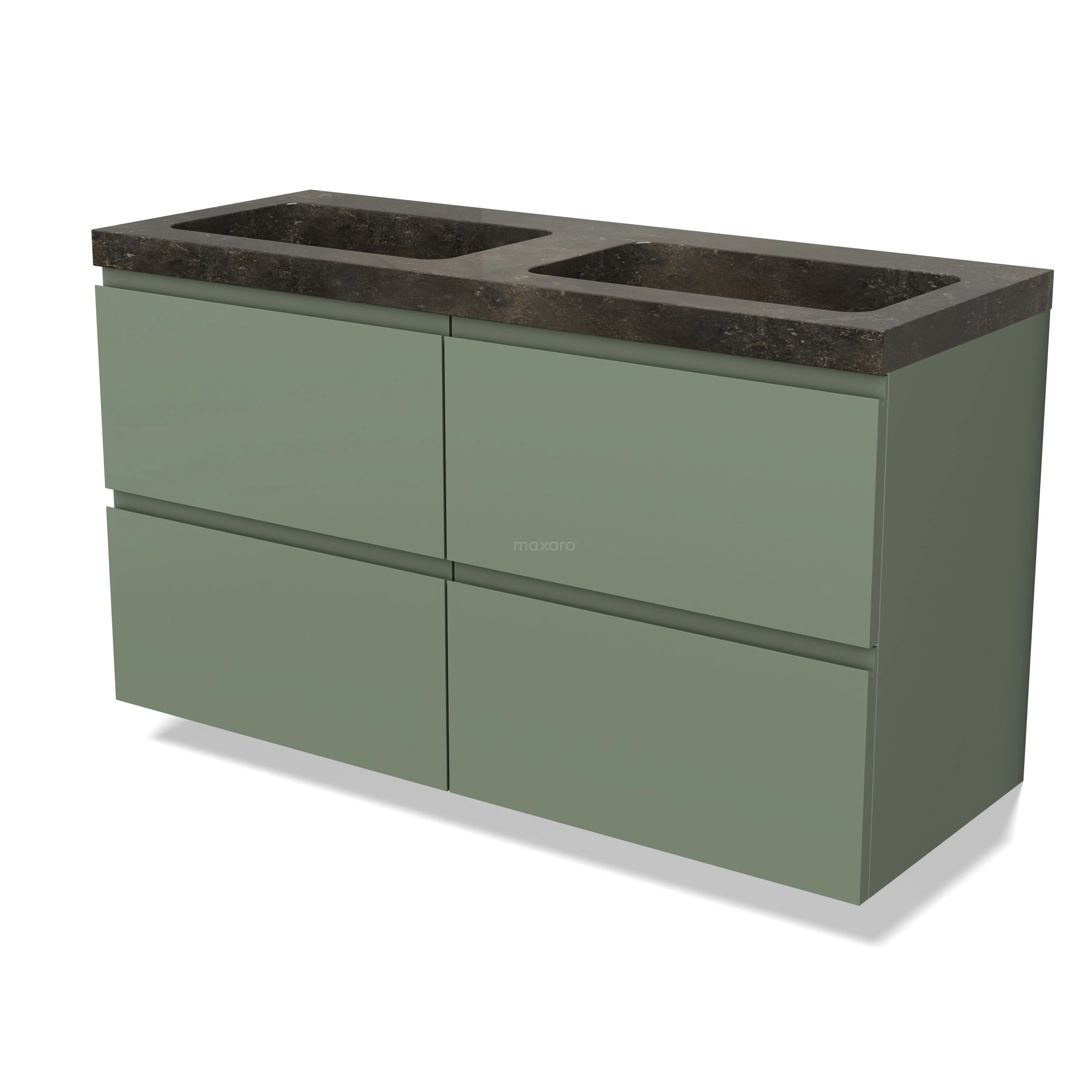Modulo Waschtische | 120 cm Salbeigrün Grifflos front Naturstein 4 Schubladen