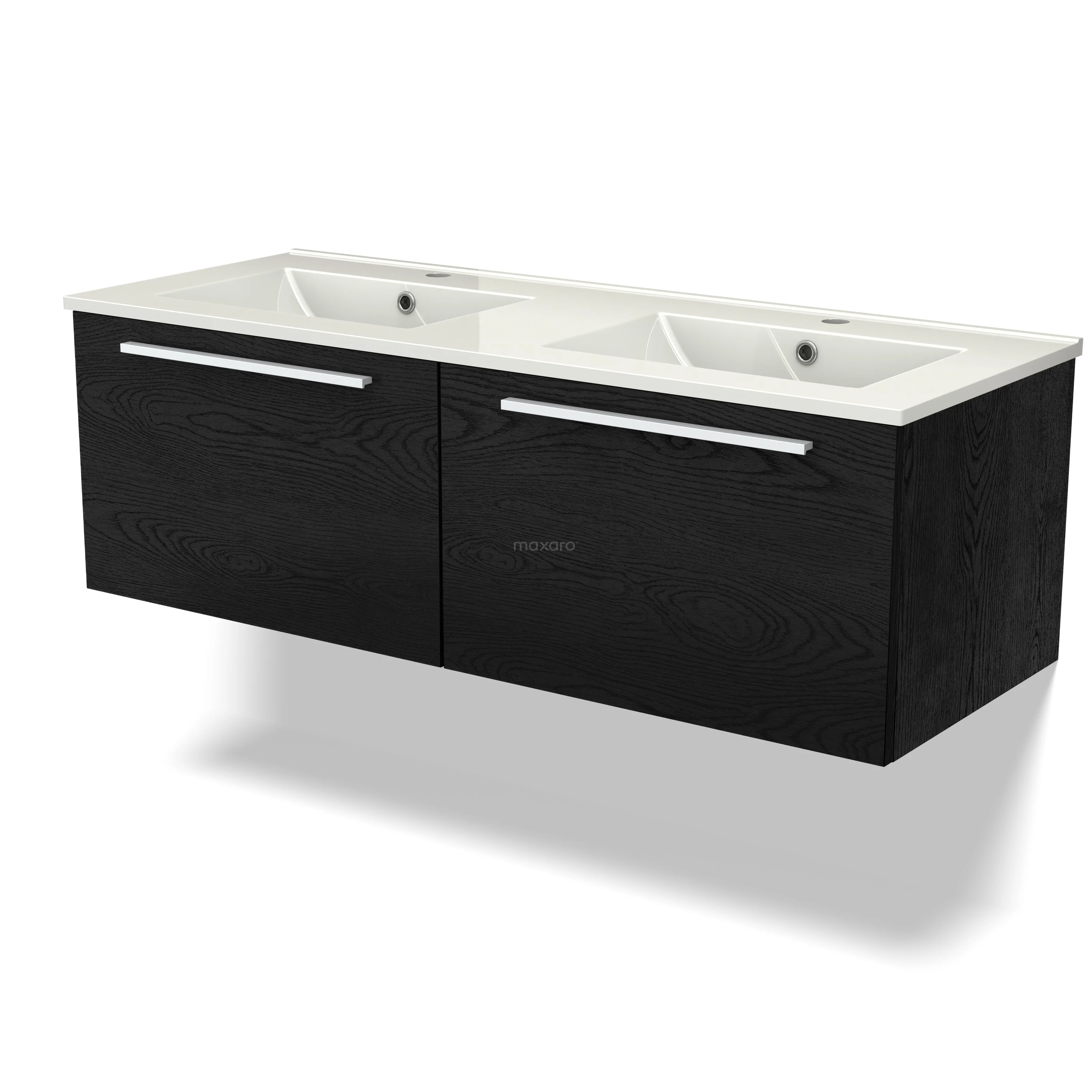 Modulo Waschtische | 120 cm Schwarze Eiche Flach front Keramik 2 nebeneinanderliegende Schubladen