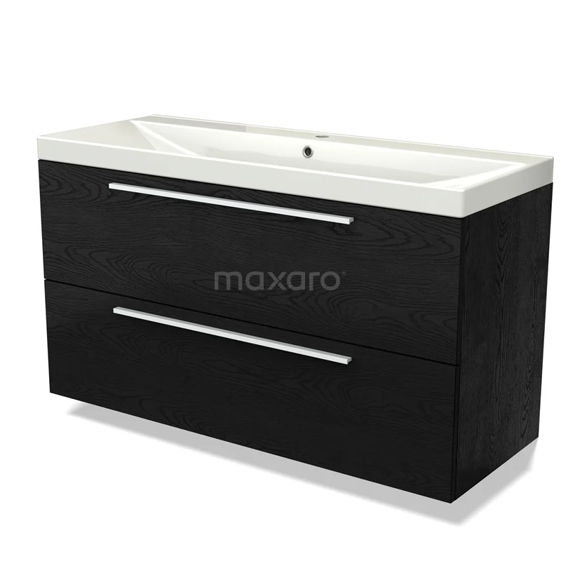 Modulo Waschtische | 120 cm Schwarze Eiche Flach front Keramik 2 übereinanderliegende Schubladen