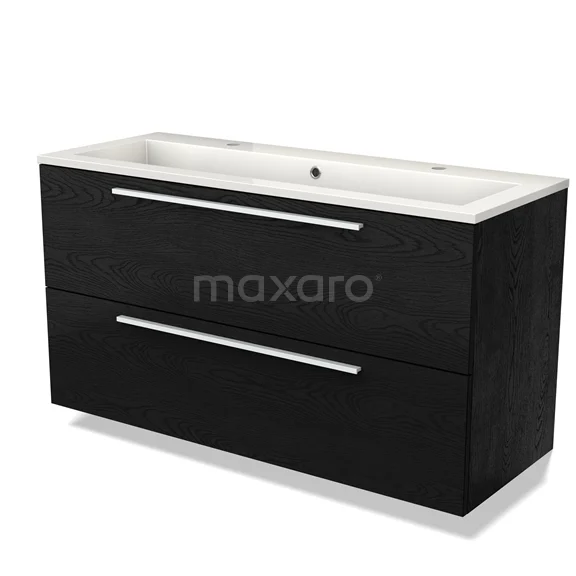 Modulo Waschtische | 120 cm Schwarze Eiche Flach front Mineralguss 2 übereinanderliegende Schubladen