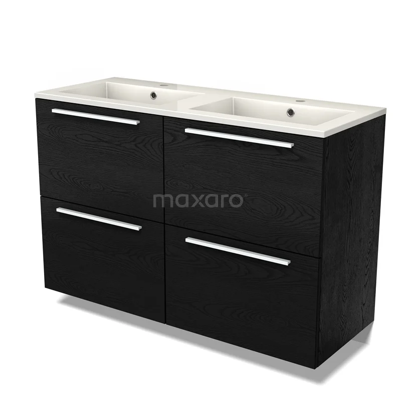 Modulo Waschtische | 120 cm Schwarze Eiche Flach front Mineralguss 4 hohe Schubladen