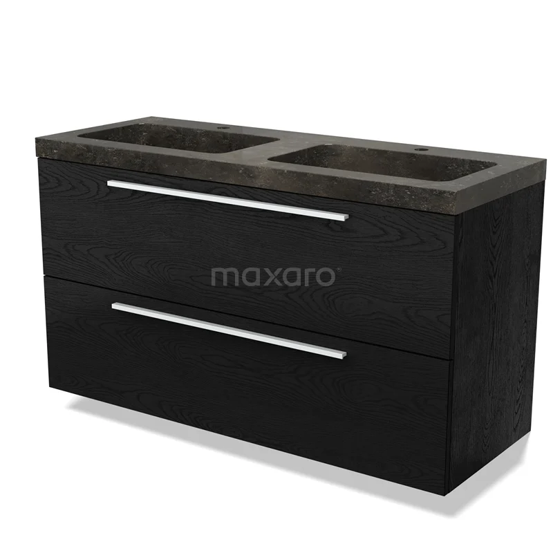Modulo Waschtische | 120 cm Schwarze Eiche Flach front Naturstein 2 übereinanderliegende Schubladen