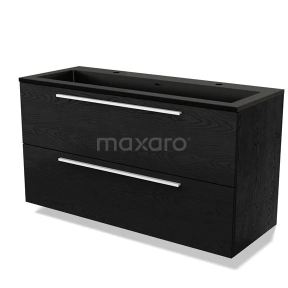 Modulo Waschtische | 120 cm Schwarze Eiche Flach front Quarz 2 übereinanderliegende Schubladen