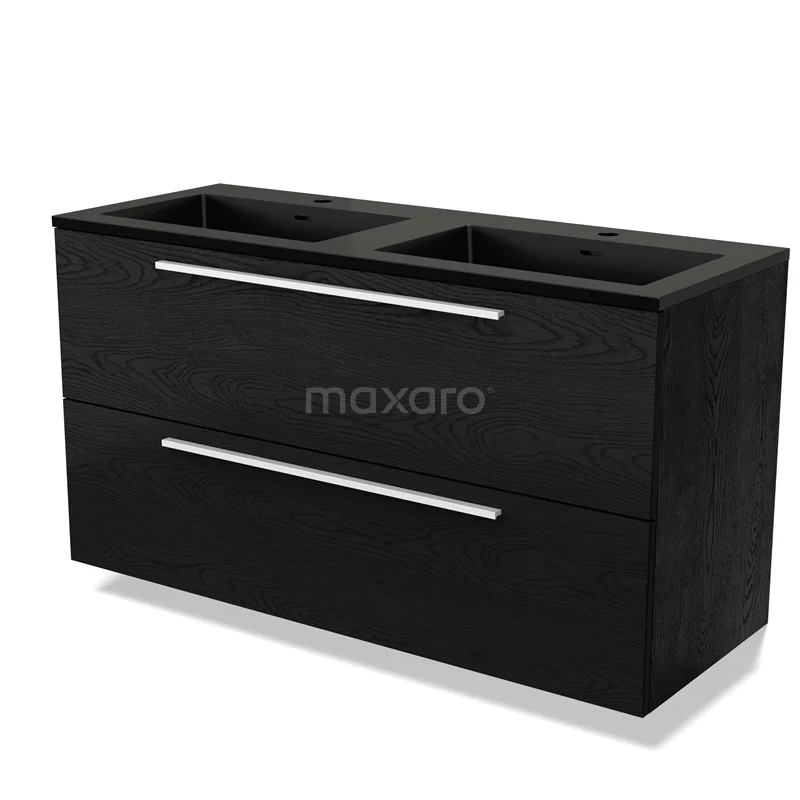 Modulo Waschtische | 120 cm Schwarze Eiche Flach front Quarz 2 übereinanderliegende Schubladen