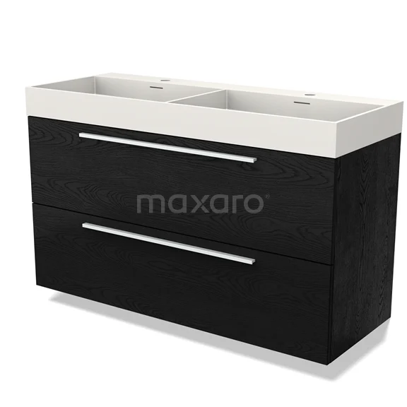 Modulo Waschtische | 120 cm Schwarze Eiche Flach front Solid Surface 2 übereinanderliegende Schubladen