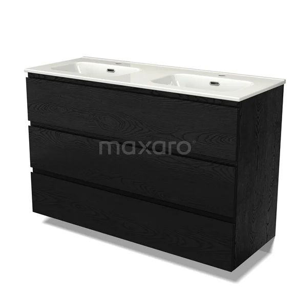 Modulo Waschtische | 120 cm Schwarze Eiche Grifflos front Keramik 3 Schubladen