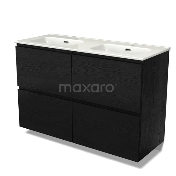 Modulo Waschtische | 120 cm Schwarze Eiche Grifflos front Keramik 4 hohe Schubladen