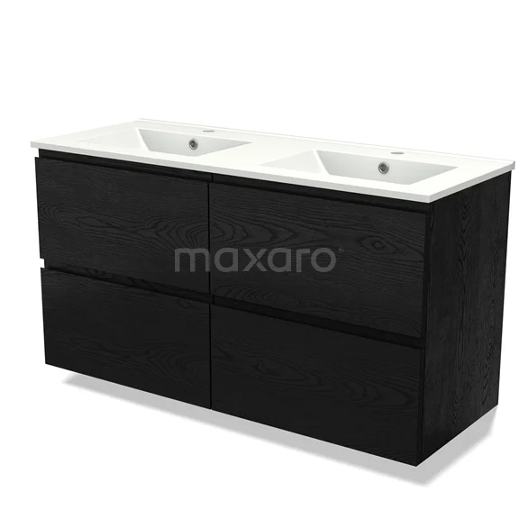Modulo Waschtische | 120 cm Schwarze Eiche Grifflos front Keramik 4 Schubladen