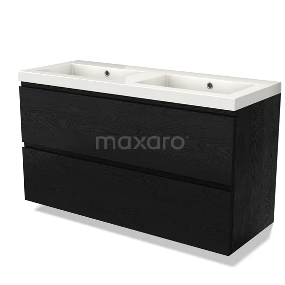Modulo Waschtische | 120 cm Schwarze Eiche Grifflos front Mineralguss 2 übereinanderliegende Schubladen