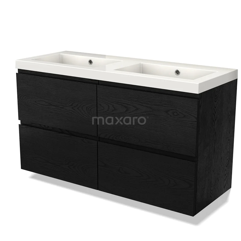 Modulo Waschtische | 120 cm Schwarze Eiche Grifflos front Mineralguss 4 Schubladen