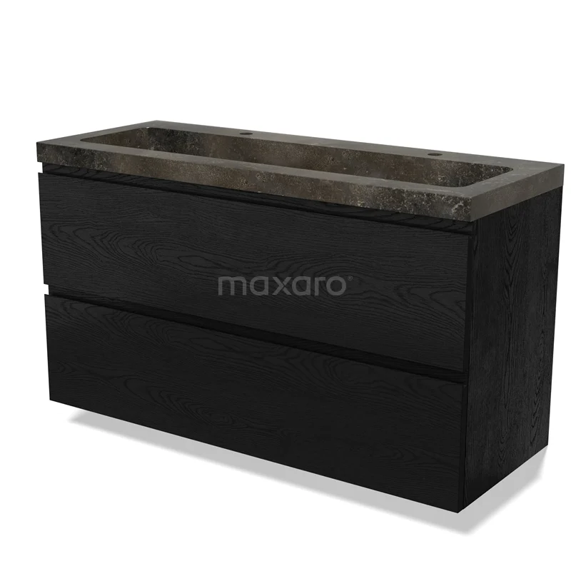 Modulo Waschtische | 120 cm Schwarze Eiche Grifflos front Naturstein 2 übereinanderliegende Schubladen