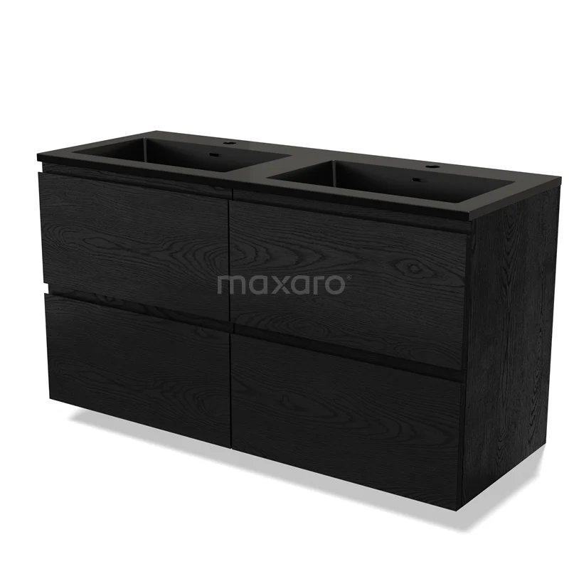 Modulo Waschtische | 120 cm Schwarze Eiche Grifflos front Quarz 4 Schubladen