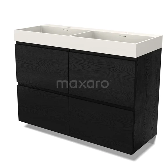 Modulo Waschtische | 120 cm Schwarze Eiche Grifflos front Solid Surface 4 hohe Schubladen
