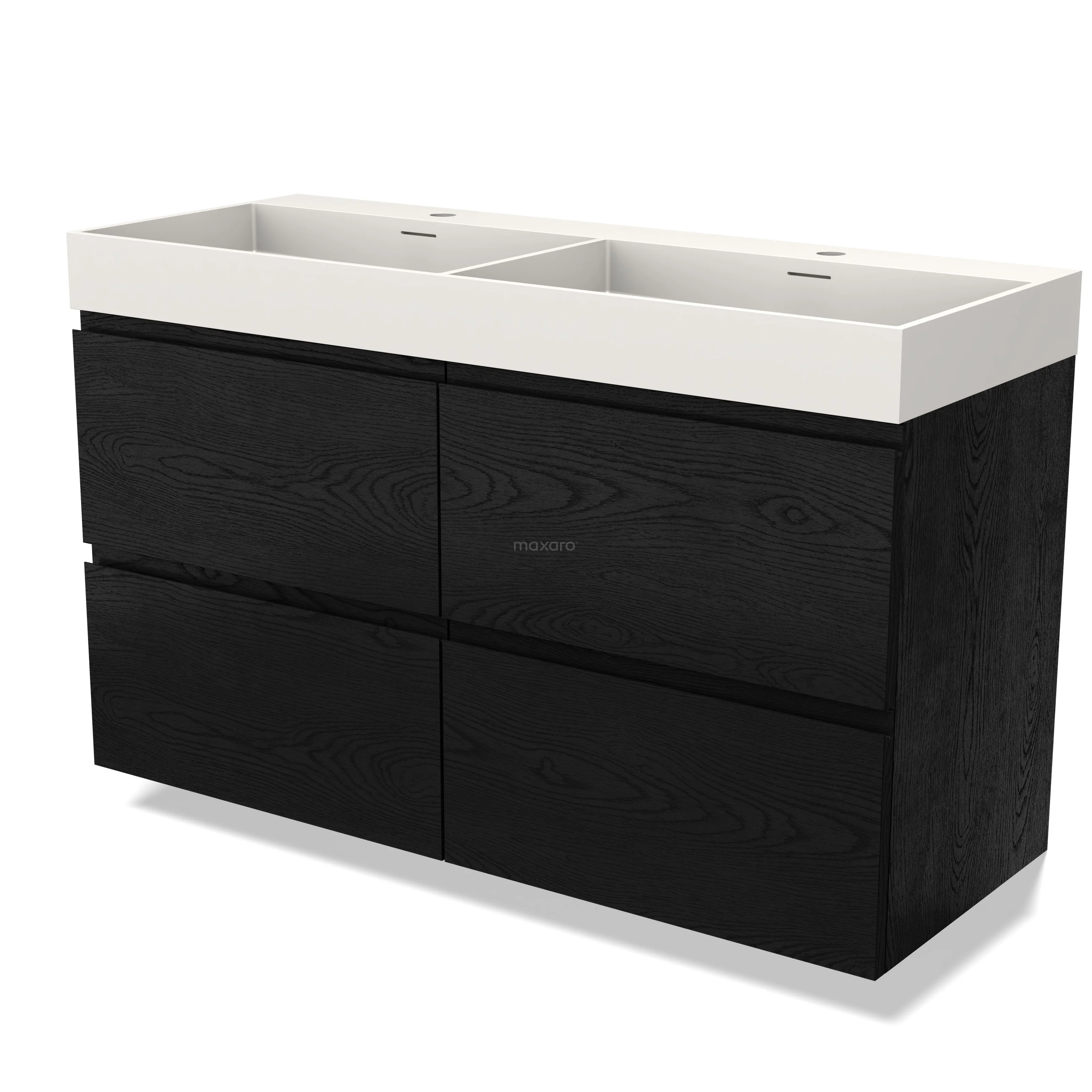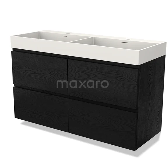 Modulo Waschtische | 120 cm Schwarze Eiche Grifflos front Solid Surface 4 Schubladen