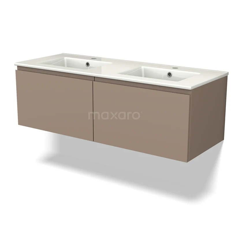 Modulo Waschtische | 120 cm Taupe Grifflos front Keramik 2 nebeneinanderliegende Schubladen
