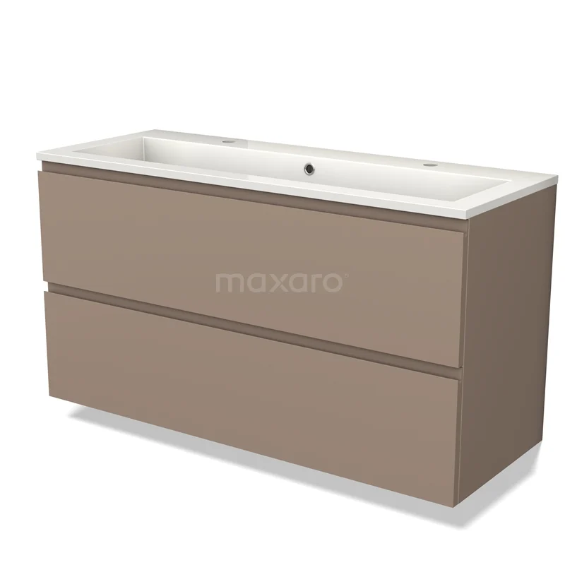 Modulo Waschtische | 120 cm Taupe Grifflos front Mineralguss 2 übereinanderliegende Schubladen