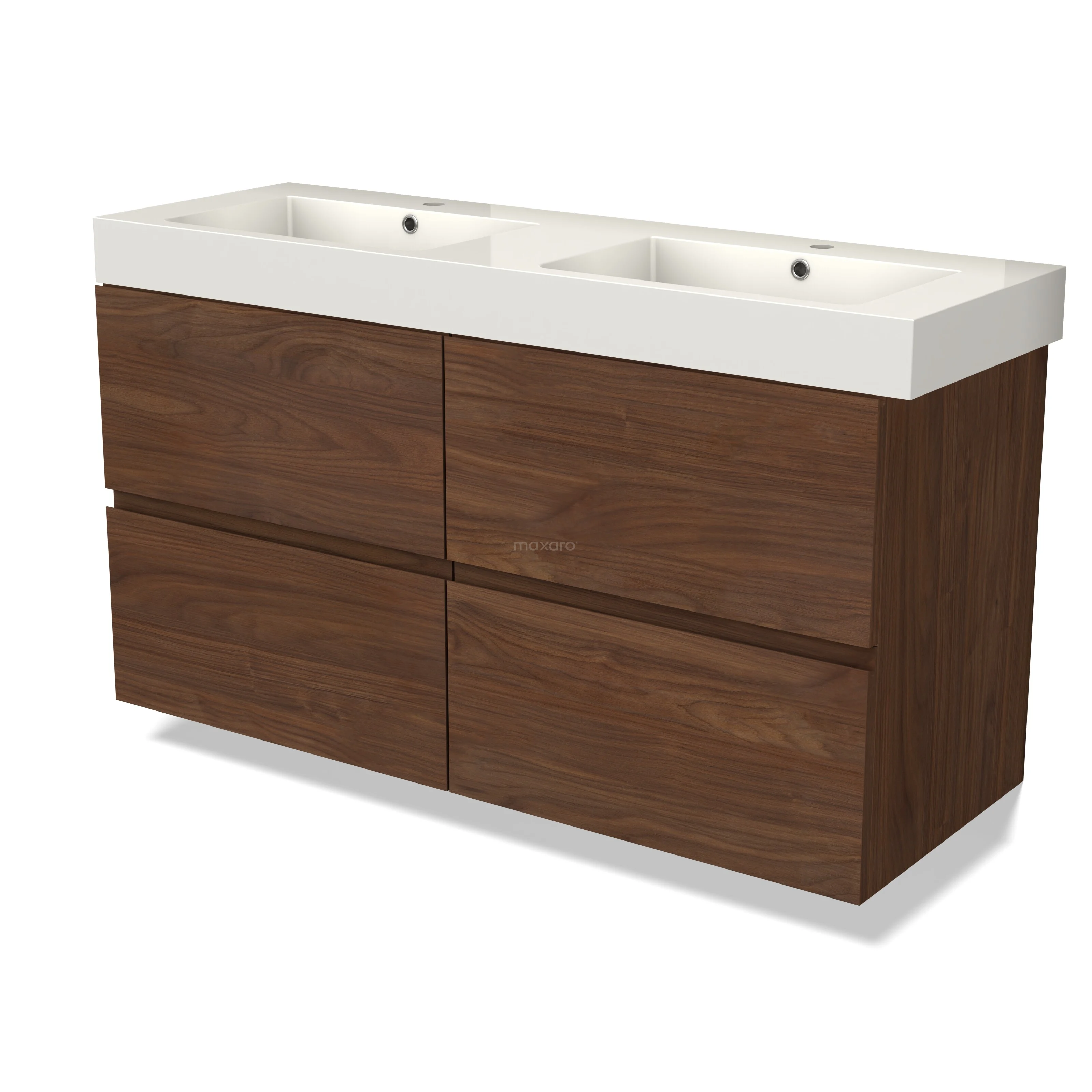 Modulo Waschtische | 120 cm Walnuss Grifflos front Mineralguss 4 Schubladen