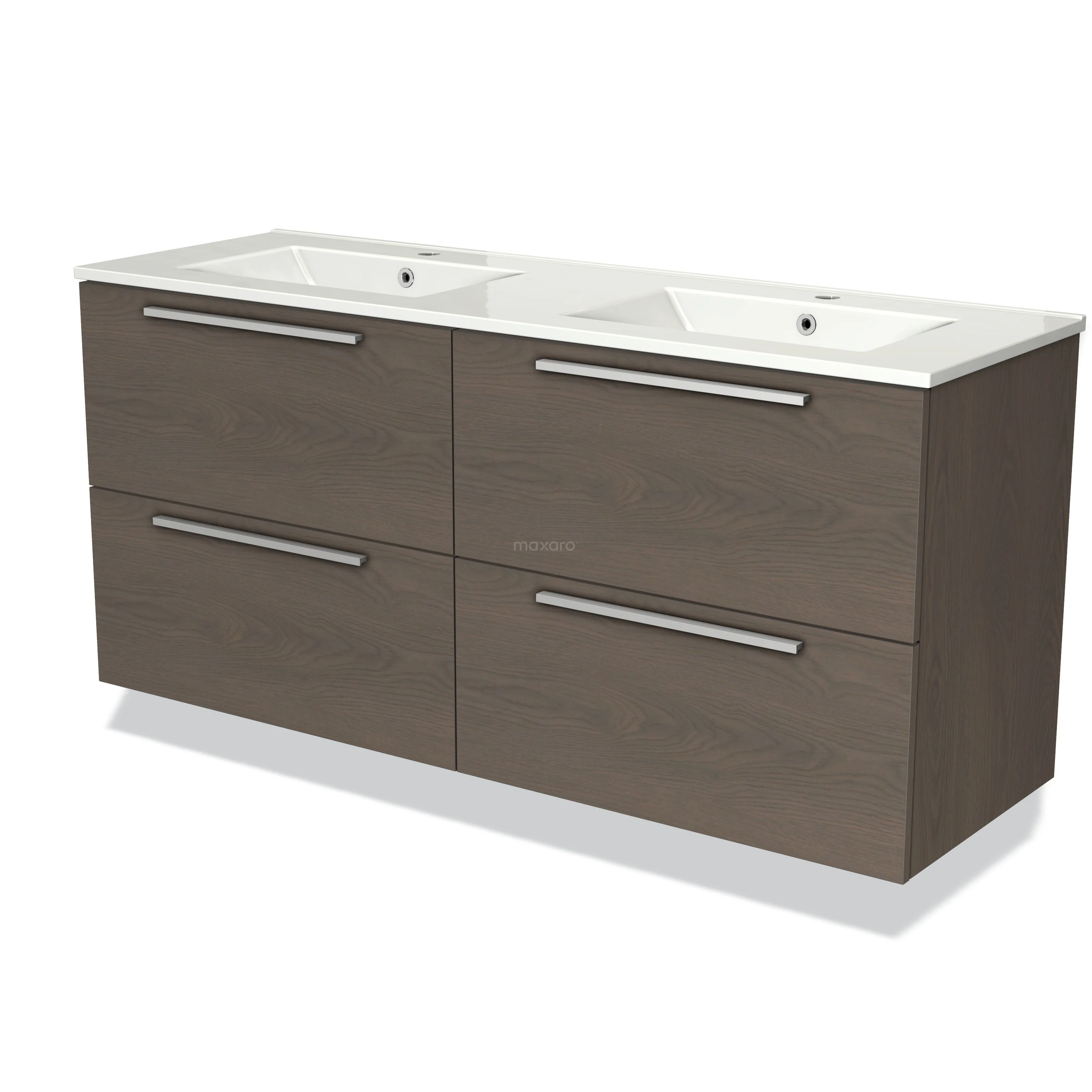 Modulo Waschtische | 140 cm Dunkelbraune Eiche Flach front Keramik 4 Schubladen