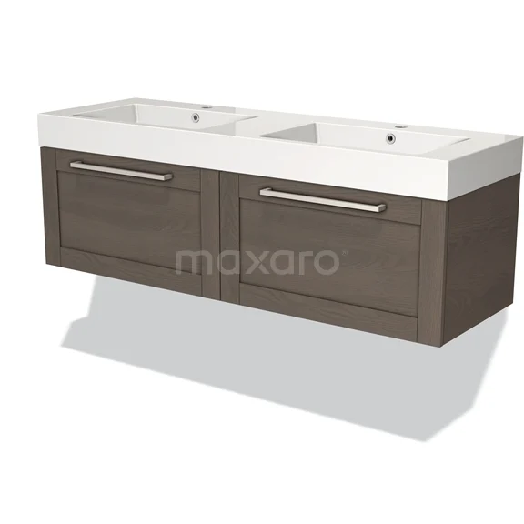 Modulo Waschtische | 140 cm Dunkelbraune Eiche Rahmen front Mineralguss 2 nebeneinanderliegende Schubladen