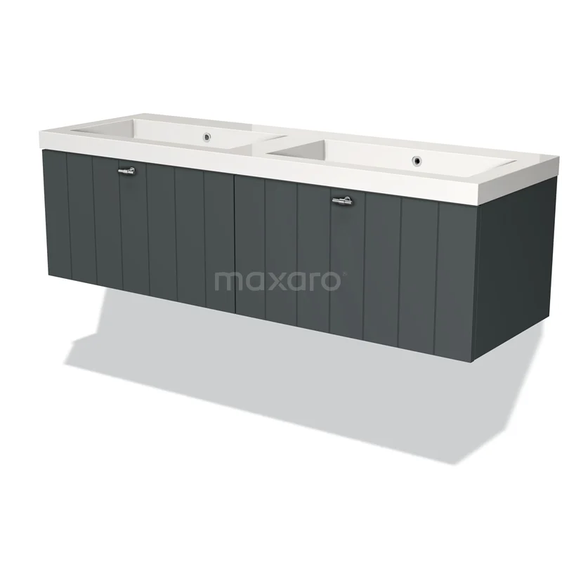 Modulo Waschtische | 140 cm Dunkelgrau Lamelle front Mineralguss 2 nebeneinanderliegende Schubladen